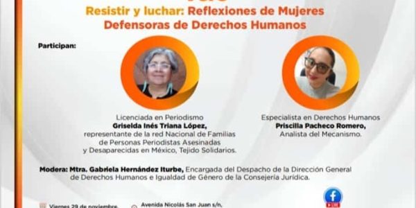 Foro que tiene por objetivo sensibilizar e informar sobre los diversos procesos que viven las mujeres Defensoras de Derechos Humanos en su labor La Dirección General de Derechos Humanos e Igualdad de Género en colaboración con el Mecanismo para la…
