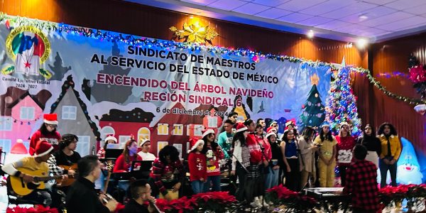 Maestros mexiquenses celebran las fiestas decembrinas con el Encendido del Árbol Navideño