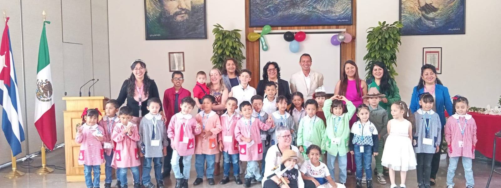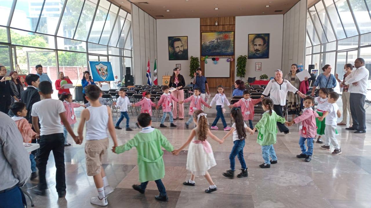 y entonces le queremos agradecer desde este podio, y pues por supuesto a todos los que laboran aquí en la Embajada, por este acogimiento que nos dan, tan cordial, tan fraterno, y a la comunidad José Martí, de verdad, el corazón son los niños, dijo en su mensaje Rocío Montoya.