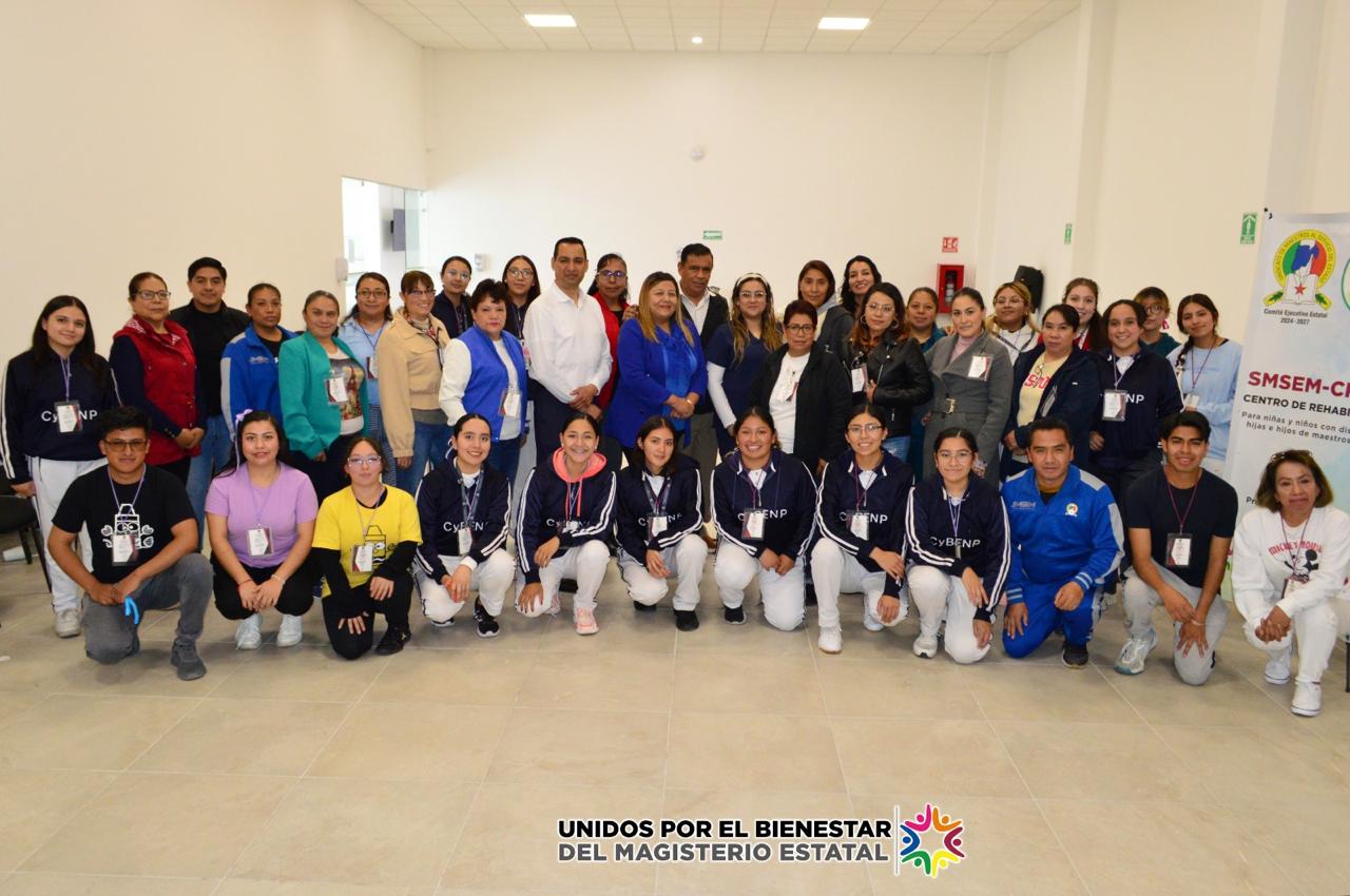 Por instrucciones del Secretario General, Jenaro Martínez Reyes, la actual dirigencia del SMSEM impulsa una política de cercanía con los docentes en formación. Como parte de estos trabajos, las y los jóvenes, próximos a concluir el sexto semestre del curso Arte y Deporte desde el marco inclusivo, conocieron de primera mano los servicios médicos, terapéuticos y paramédicos que ofrece este espacio creado especialmente para hijas e hijos de maestras y maestros con discapacidad.