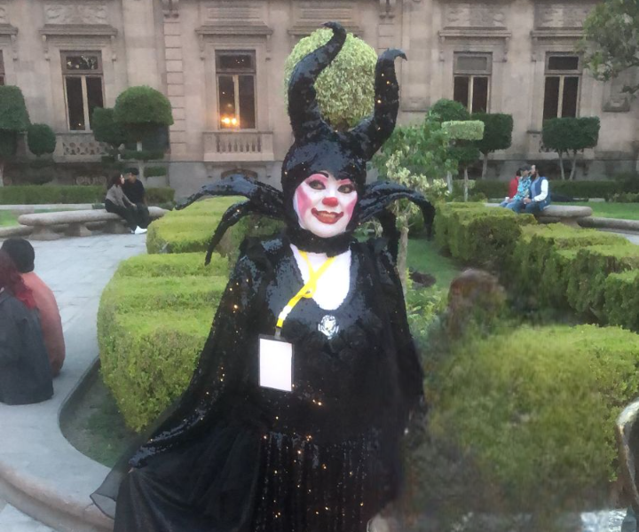 Vestida con un traje inspirado en Maléfica, Angie explicó que los concursos dentro del festival contemplan cuatro tipos de personajes clown: cara blanca, Augusto, trampa y de carácter. En esta ocasión, su interpretación de un personaje de carácter le permitió aportar una visión creativa y profesional durante las evaluaciones.