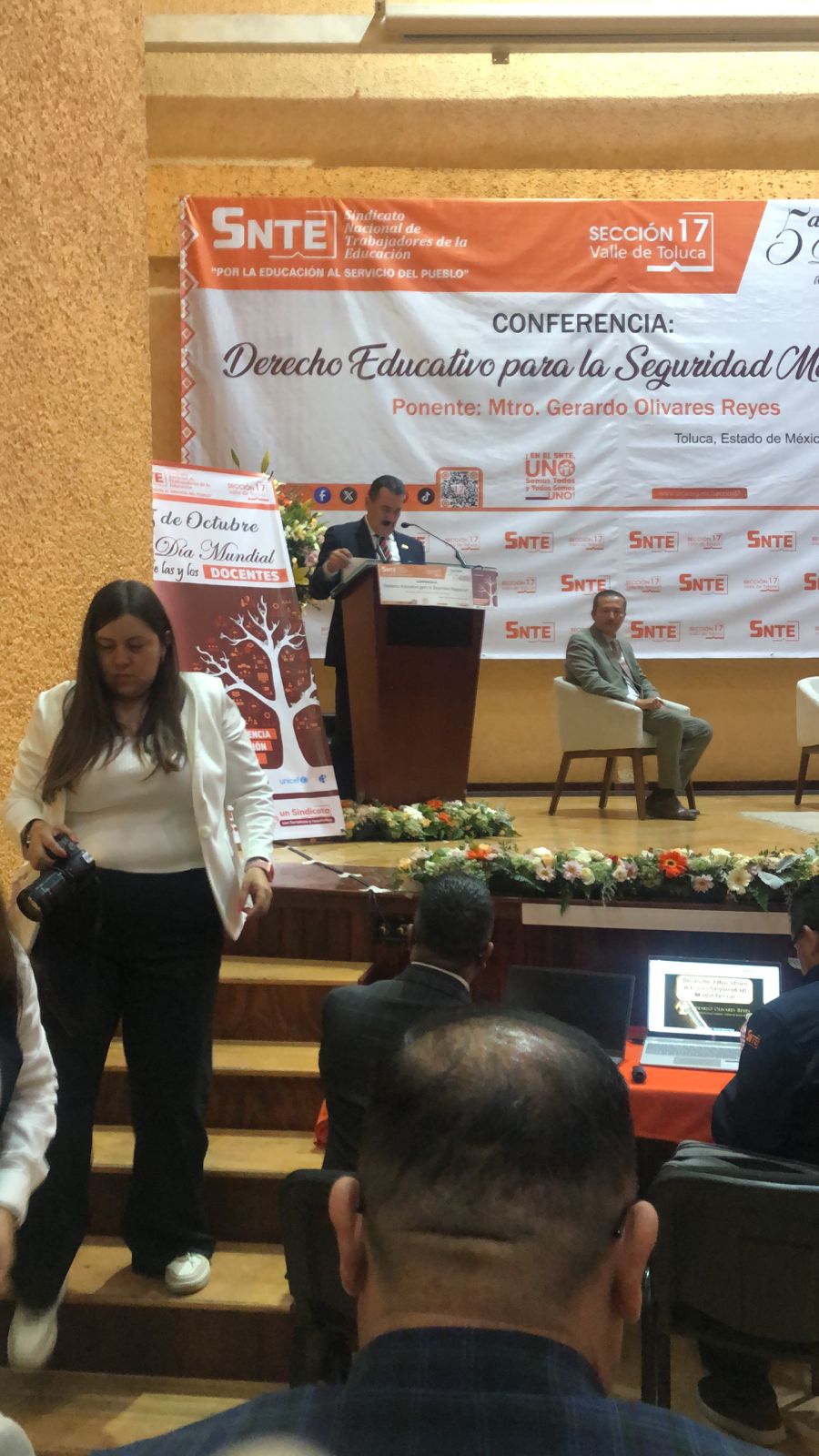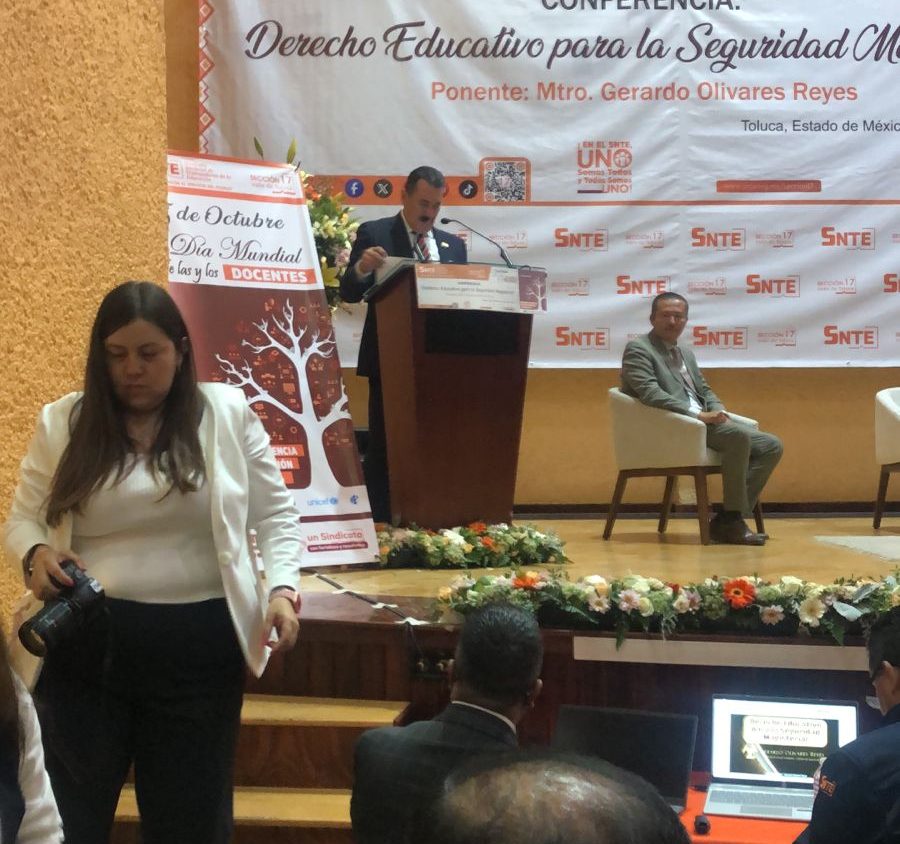 * Gerardo Olivares Reyes, especialista en derecho educativo y psicología, abordó con profundidad el tema de la seguridad jurídica magisterial, explicando cómo el marco legal puede convertirse en un escudo protector del trabajo docente