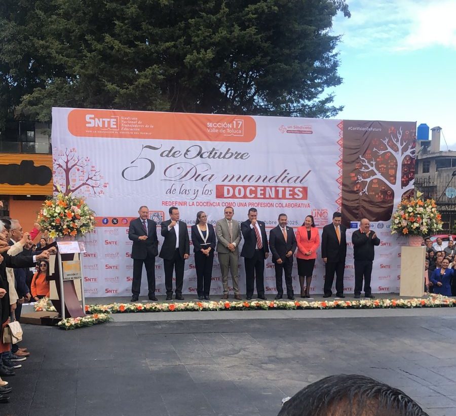 Toluca, Estado de México, 5 de octubre de 2025. — La Sección 17 del Sindicato Nacional de Trabajadores de la Educación (SNTE), correspondiente al Valle de Toluca, llevó a cabo este domingo la conmemoración del Día Mundial de las y los Docentes, en un acto encabezado por su secretario general, José Alfredo Geraldo Benoit, quien reconoció la labor del magisterio mexiquense como pilar fundamental en la formación de las nuevas generaciones.